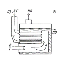 циркулирует нагретая вода и пар, а снаружи трубы омываются дымовыми газами;