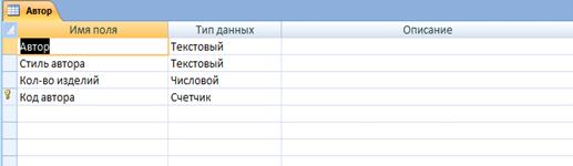 Ключевым полем в данной таблице является «Код автора», рисунок 2.1.