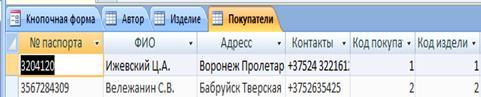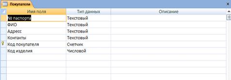 Ключевым полем в данной таблице является «Код покупателя», рисунок 2.3.