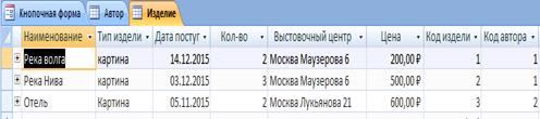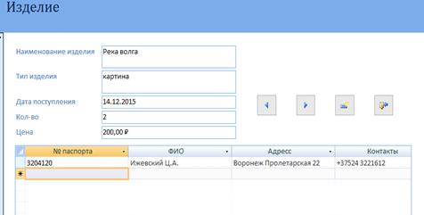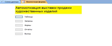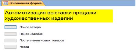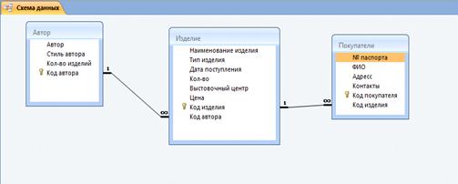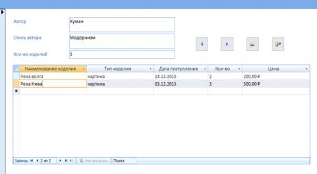 продажи художественных изделий. В качестве среды проектирования использовался MS Office, в частности MS Access 2007.
