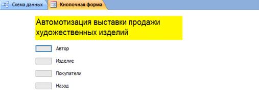 которой расположено четыре кнопки: Автор, Изделия, Покупатели, а также кнопка