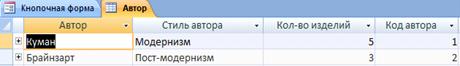 При нажатии кнопки Автор будет осуществлен переход в таблицу Автор. В