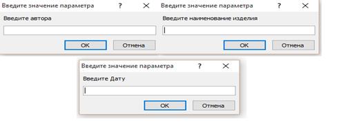 следующие поля: Автор, Наименование изделия, Дата поступления, Цена, Кол-во,