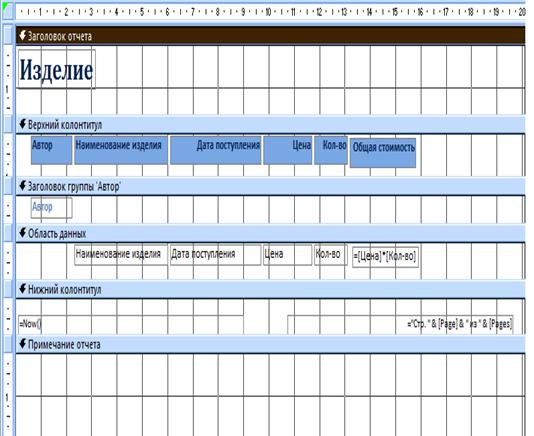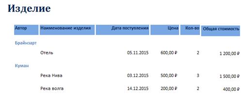 отчёт на основе данных из таблиц Автор и Изделие. В отчёте присутствуют