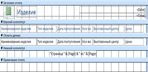 Форма отчёта по изделиям в режиме конструктора представлена на рисунке