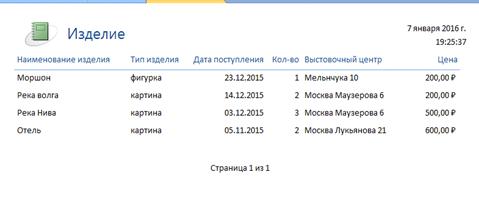 на основе данных из таблицы Изделие. В отчёте присутствуют следующие поля: