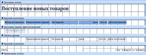 Рисунок 2.21 - Отчёт по новым товарам в режиме конструктора