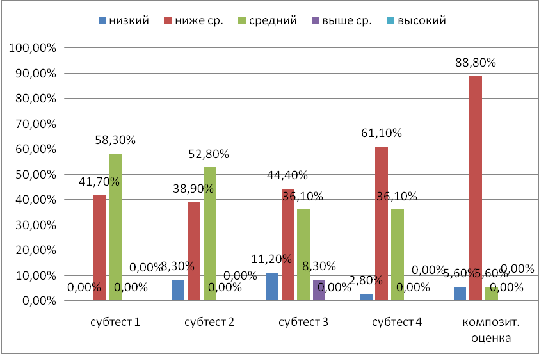 испытуемых (88,8%) находится на уровне ниже среднего.