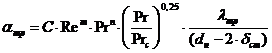 труб в пучке и значения числа Рейнольдса: