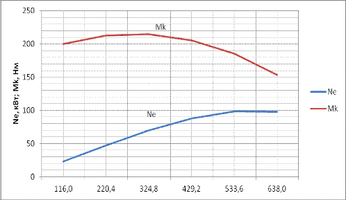 внешней скоростной характеристики двигателя, определение передаточного числа