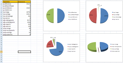 аппаратных средств и работе сети в целом в табличном и графическом виде.