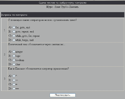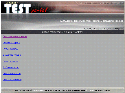 Создание портала контроля знаний студентов для систем дистанционного обучения