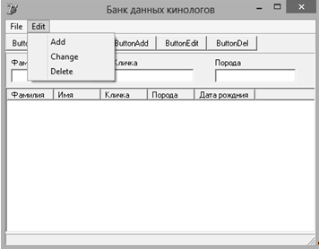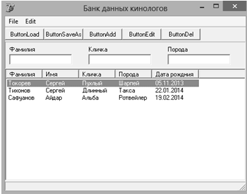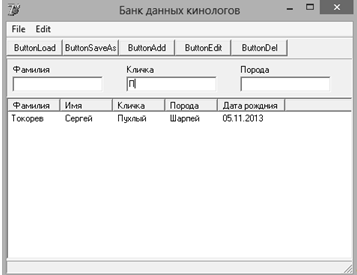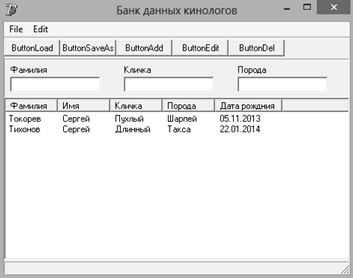 позволяющая осуществить быстрое редактирование данных и "ButtonDel"