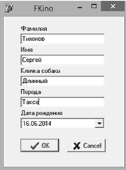 которые позволят внести нового человека с описанием его собаки. (Рис.1.5.
