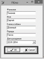 данные нажав на кнопку "ОК" или же отменить ввод данных и выйти в