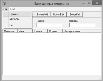 данных, который загрузится в программу для дальнейших действий с ним "Open…"