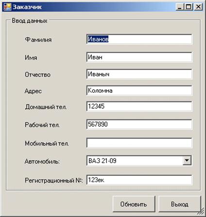 Форма FormCustomer.cs («Заказчики»)AUTO