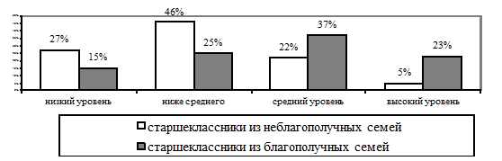 старшеклассников из неблагополучных семей; 3) охарактеризовать социальные