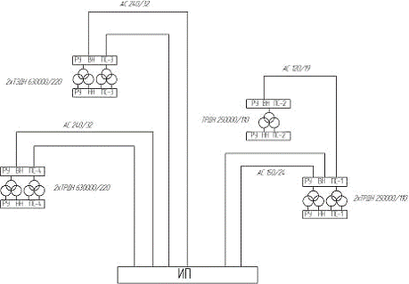 . Разработка вариантов конфигураций и выбор номинальных напряжений