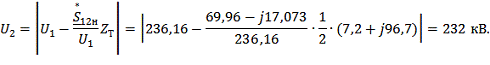 Напряжение на стороне НН, приведённое к обмотке ВН, кВ