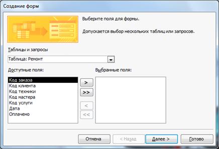 где выбираем пункт «Создание формы с помощью мастера» (рисунок 7). После