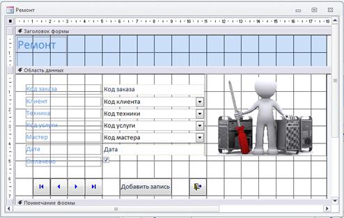 создания формы в режиме конструктора меняем форму для более удобного ввода