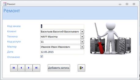 данных (рисунок 8). Ниже представлены все созданные формы (рис. 9 - 18).