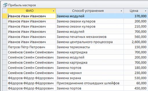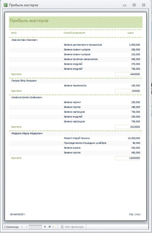 Рисунок А.2 - Отчет «Прибыль мастеров»