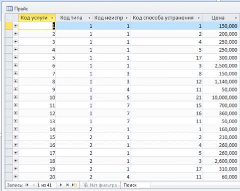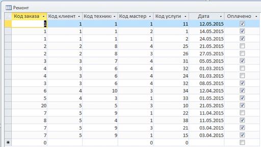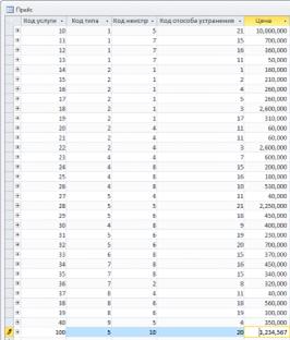 Кленты.[Код клиента] = Ремонт.[Код клиента]) ON Прайс.[Код услуги] = Ремонт.[Код