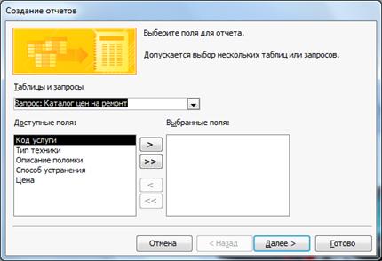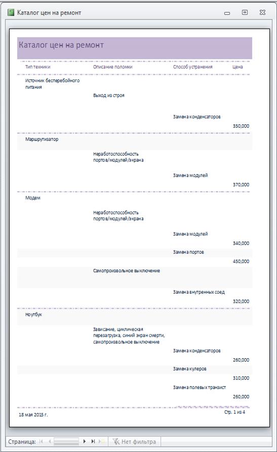Рисунок А.4 - Отчет «Каталог цен на ремонт»