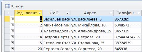 данных в соответствии с вышеприведённой структурой базовых таблиц. Перед