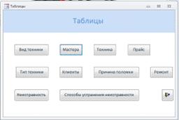 кнопочная форма (рисунок 82), в которой присутствуют кнопки: «Таблицы»,