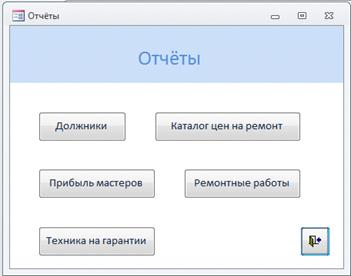 Рисунок 90 - Кнопочная форма «Отчёты»