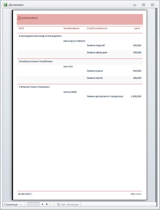 неисправности] INNER JOIN (Прайс INNER JOIN (Кленты INNER JOIN Ремонт ON
