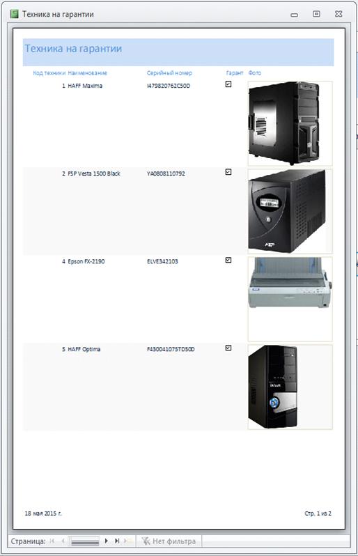 информацию о технике на гарантии с её фотографией. Конструктор отчёта