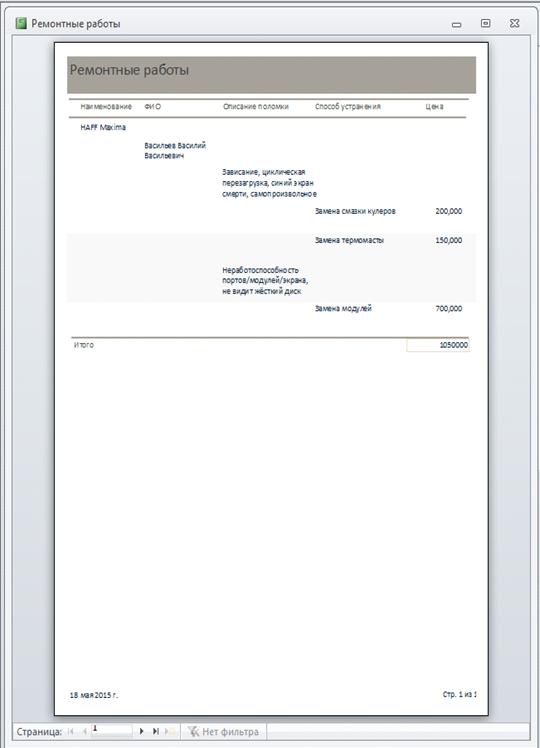 Рисунок А.5 - Отчет «Ремонтные работы»
