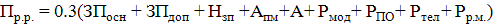 следующие элементы: ЗПосн, ЗПдоп, Нзп, Апм, А, Рмод, РПО, Ртел, Рр.м. и Пр.р..
