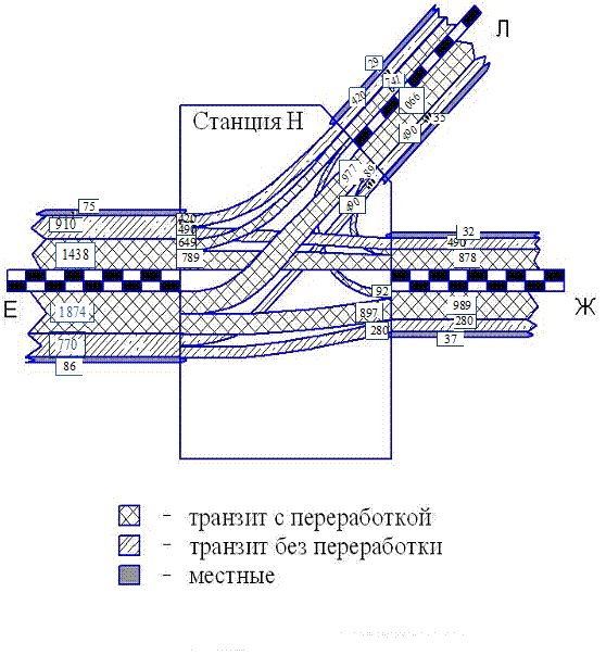 станции вагонов различных категорий. На плане-графике наглядно видны «узкие»