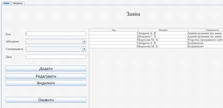 Результуюче програмне застосування дозволяє автоматизувати роботу секретарів
