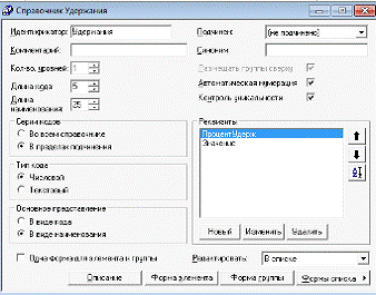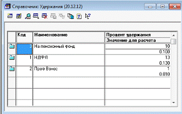 меню «Справочники» выбирается подпункт «Удержания». Открывается форма