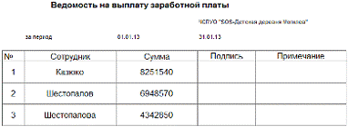 Рисунок 32 - Пример вывода отчета «Ведомость заработной платы» за январь