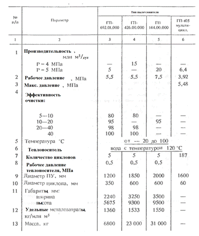 Основные параметры циклонных пылеуловителей