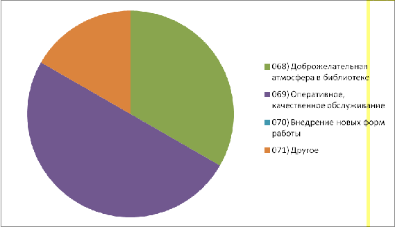 обслуживание, как положительное качество библиотеки. Меньшее количество считает