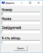 робочих показників, таких як номер кабінета, назва кабінета, ПІБ завідуючого