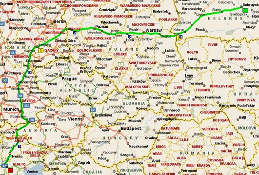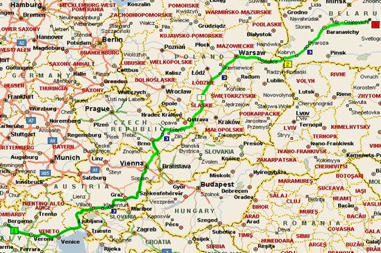 Рисунок 1.2 - Маршрут перевозки Бобруйск - Верона (через Германию)
