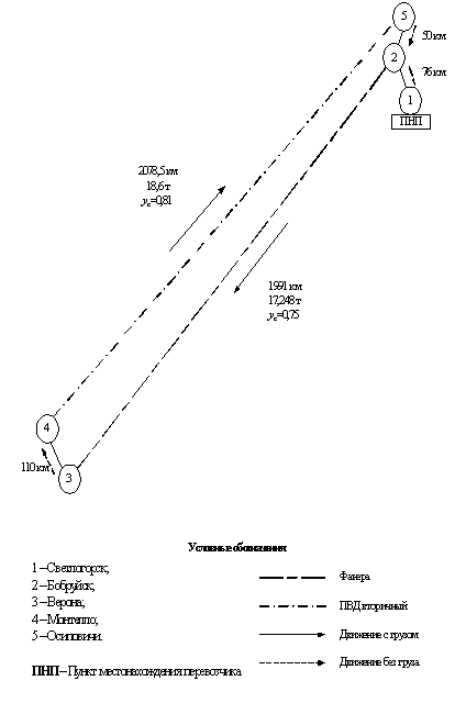 Маршруты движения между корреспондирующими пунктами и затраты времени
