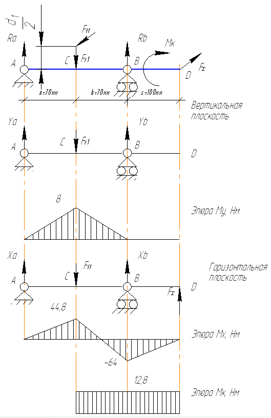 . РАСЧЕТНАЯ СХЕМА ВАЛОВ РЕДУКТОРА