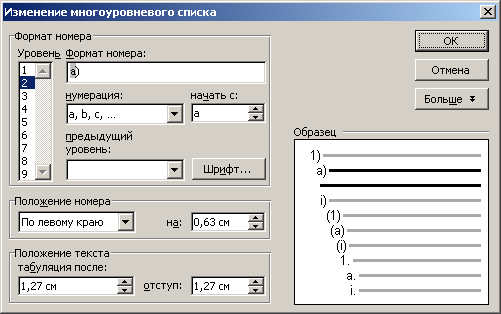 Outline Numbered List) виберіть необхідні параметри, наприклад, в списку Рівень