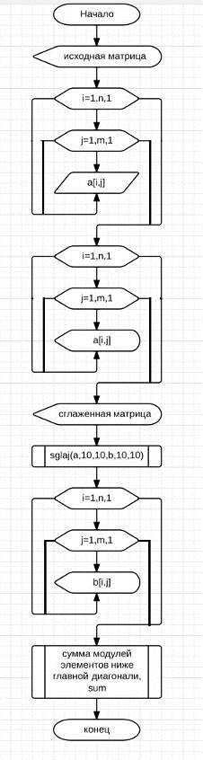 размером 10х10 и простроила в виде процедуры. В сглаженной матрице нашла сумму