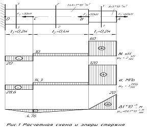 № 1. Проверка прочности ступенчатого стержня при деформации растяжение и сжатие